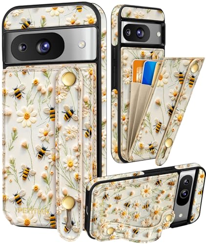 Petitian for Google Pixel 8A Case with Wallet - Women Girls Cute Girly Aesthetic Unique Design Leather Credit Card Holder Cardholder Stand Wristband for Pixel 8A, Flower