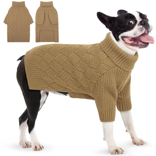AOFITEE Dog Sweater, Warm Dog Sweaters for Large Dogs, Halloween Dogs Sweater, Turtleneck Girl Pet Sweaters, French Bulldog Sweatshirt, Knit Female Male Pet Knitwear for Winter Fall (Brown Large)