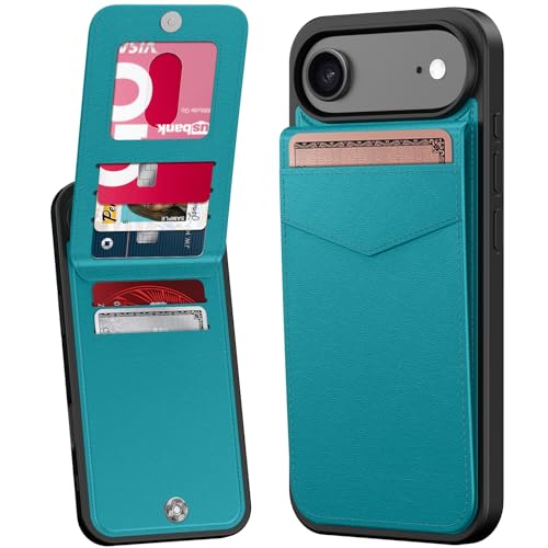 Bemal for iPhone Air Wallet Case, Built-in Card Holder, RFID Blocking, PU Leather Kickstand, Magnetic Closure, Durable Shockproof Phone Cover for iPhone 17 Air for Women and Men, Turquoise