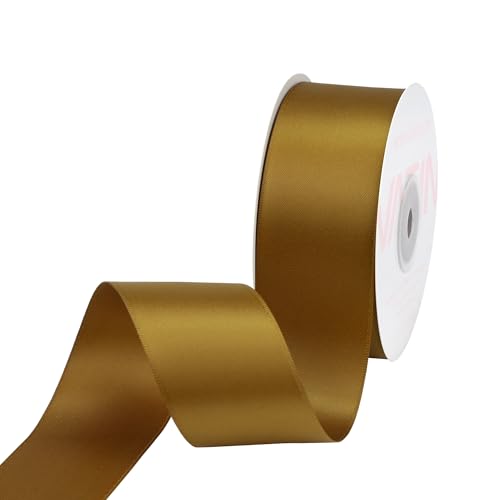 VATIN Double Face Antique Gold Satin Ribbon 1-1/2" Continuous 25 Yards,Gold Polyester Fabric Ribbon use for Bows Bouquet, Gift Wrapping, Floral Arrangement Wedding Decoration