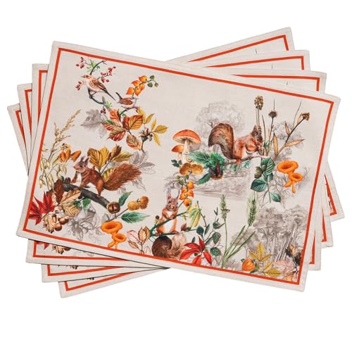 Maison d' Hermine Placemats Set of 4 100% Cotton Washable Cloth Place Mats, Reusable Table Mats for Thanksgiving Christmas Decorations Kitchen Dining Party Wedding Restaurant (Recolte, 13" x 19")