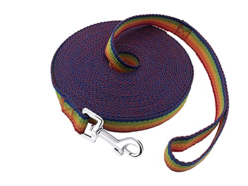 PETGOGO 15ft 20ft 30ft 40ft 50ft Long Dog/Puppy Lead Obedience Recall Training Dog Leashes for Small Medium Dogs Camping, Training, Play, or Backyard (Rainbow, 1" x 50FT)