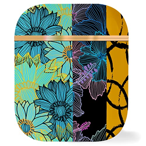 Berkin Arts Compatible with AirPods 1st Generation Case, AirPods 2nd Generation Case Ultra Slim Protetive Cover with Keychain Geometric Abstract Art Neon Floral Pattern