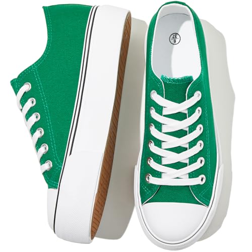SERNIAL Womens White Platform Sneakers Low Top Platform Shoes Black Canvas Shoes for Women(Green,US6)