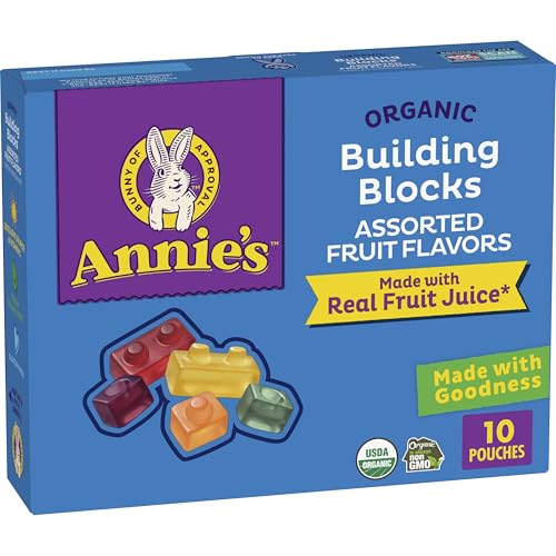 Annie's Organic Building Blocks Fruit Flavored Snacks, Assorted Fruit Flavors, Gluten Free, 10 Pouches, 7 oz