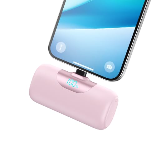 Mini Portable Charger for iPhone,Upgraded 22.5W PD Fast Charging 5500mAh Ultra-Compact Power Bank,LCD Display Plug-in Cute Battery Pack Travel Essentials for iPhone 14/14Pro/13/12/11/X/8/7/6plus-Pink