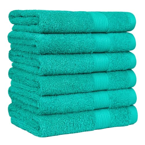Amazon Basics 6 Piece hand towels for bathroom, Fade Resistant 100% Cotton Hand Towels, soft absorbent bathroom hand towels 6 - Pack (26''x16''), Teal