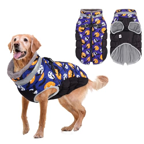 Dog Waterproof Winter Coat with Harness, Reflective Warm Dog Jacket with Zipper for Cold Weather, Dog Snowsuit for Small Medium Large Dogs YRFN11XL