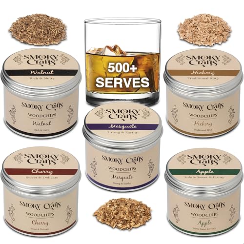 Smoky Crafts 5 x 2oz Wood Chips for Cocktail Smoker (Set of 5: Cherry, Hickory, Apple, Mesquite, Walnut) - 5 Flavors of Smoking Gun Wood Chips - Whiskey Gifts for Men