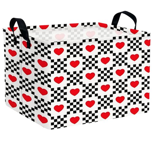 ASKETAM Valentine's Day Basket for Gifts Empty Cute Heart Large Gift Basket Decorative Storage Bin for Kid and Baby Room Décor (Black and White Checkered Heart)