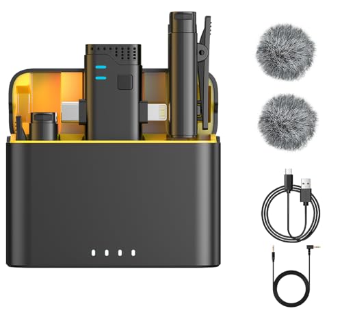 Caiord 2 Pack Professional Wireless Mini Microphone for iPhone, iPad, Android Phone, Lapel Mics Plug-Play Clip on Lapel Mic for YouTube, Recording, Vlog, Facebook Live
