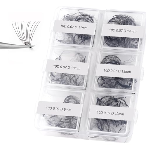 FADLASH Premade Fans Eyelash Extensions 300pcs 10D Premade Lash Fans D Curl Pre Made Fans Lash Extensions Volume Eyelash Extensions Premade Eyelash Fans Loose Fans (10D-0.07D-9-14mm)
