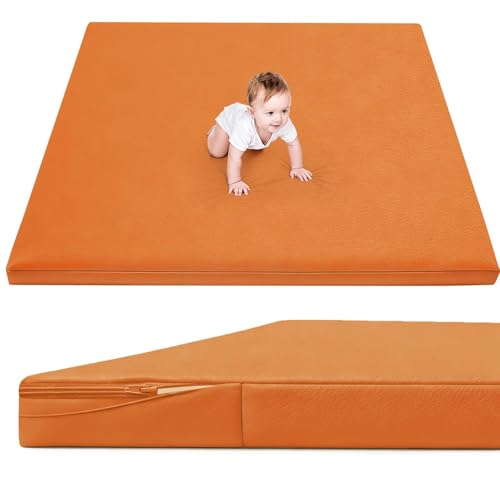 ILPEOD Waterproof Baby Play Mat for Floor 1.3"Thick Memory Foam 47*47 Cushion Playpen Playmat Tummy Time Crawling Mat Nursery Rug Pad Mattress Create Soft & Safe Area for Infants,Toddler,Kid,Orange