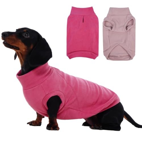 IECOii 2 Pack Fleece Dog Sweater Pullover for Weiner, Cozy Stretchy Thermal Winter Clothes for Medium Breeds with Leash Hole, Soft Pet Hoodie for Indoor & Outdoor (Size L, Rose Red & Dusty Pink)