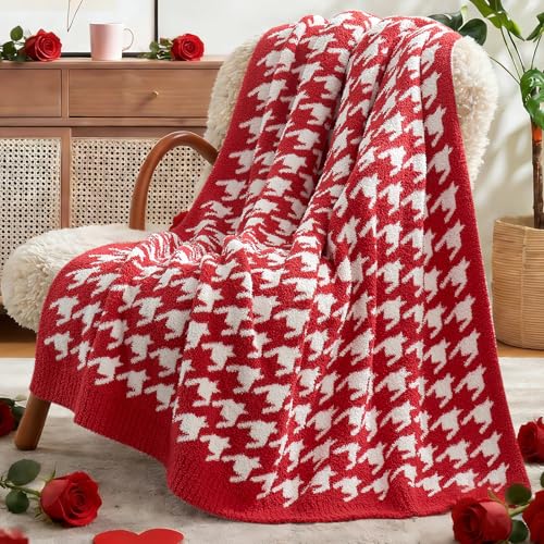 Snuggle Sac Christmas Throw Blanket - Soft Holiday Blanket for Couch, Gift for Family - Houndstooth Red, 50x60 Inches