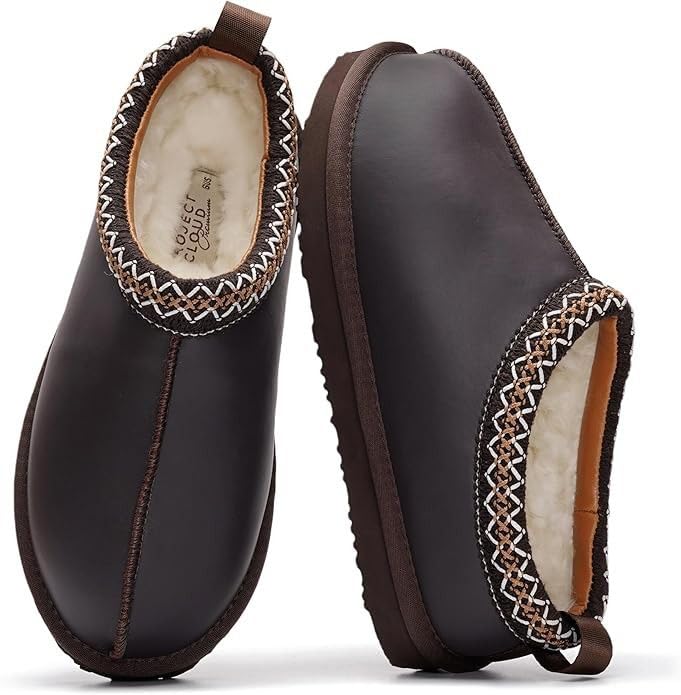 Project Cloud 100% Genuine Leather Womens Slippers w/Genuine Australian Shearling Fur Lining Slippers for Women - Non-Slip EVA w/Memory Foam Fuzzy Slippers Women Footwear (Nerita_W, BRWNDIS,8.5)