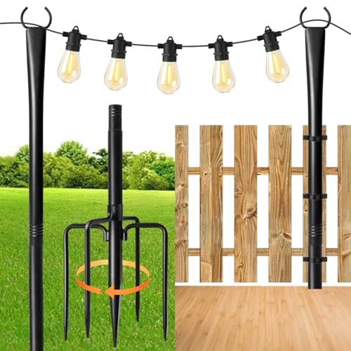 MuliVid 2 Pack 10FT Lighting Hanging Pole for Outside, Waterproof Hardened Metal Outdoor String Light Poles for Patio, Garden, Bistro, Wedding, Parties