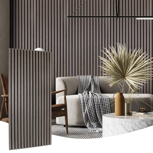 Yun-aeon Walnut 4 Pack Wood Slat Acoustic Panels 47.2 x 23.6 Inch 3D Fluted Design for Sound Absorbing Wall and Ceiling Noise Reduction Home Theater Office Modern Decor