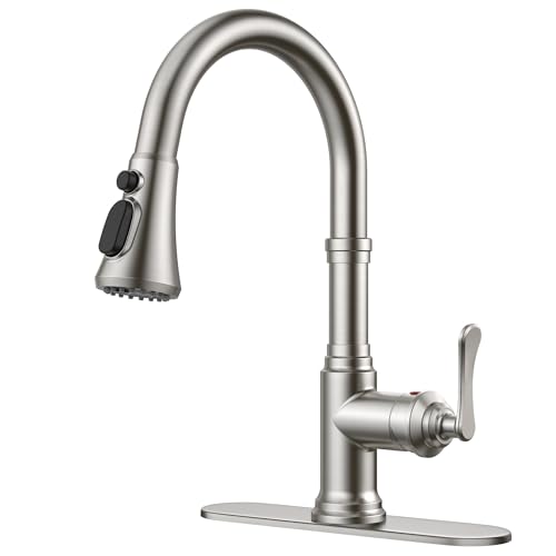FORIOUS Antique Kitchen Faucets with Pull Down Sprayer Brushed Nickel, 3 in 1 Stainless Steel High Arc Single Handle Sink Faucet for Farmhouse Camper Rv Bar, Fit for 1 or 3 Hole