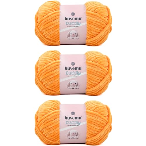 Cuddly Velvet Chenille Yarn, Super Soft Fluffy Bulky for Knitting Crocheting Blanket Amigurumi, Durable for Shedding, 100 Gram (3.53 Ounces) 109 Yards (100 Meters) (Tangerine) (3 Skeins)