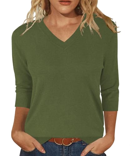 JomeDesign Fall Tops for Women 2025 V Neck 3/4 Sleeve Tunic Blouses Dressy Casual Sweater Green