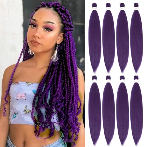 Purple Prestretched Braiding Hair, 26 Inch 8 Pack Pre Stretched Braiding Hair For Braid Women Hair, Professional Synthetic Hair For Knotless Boho Crochet Braids,Soft Yaki Straight(26in,8pc,purple)