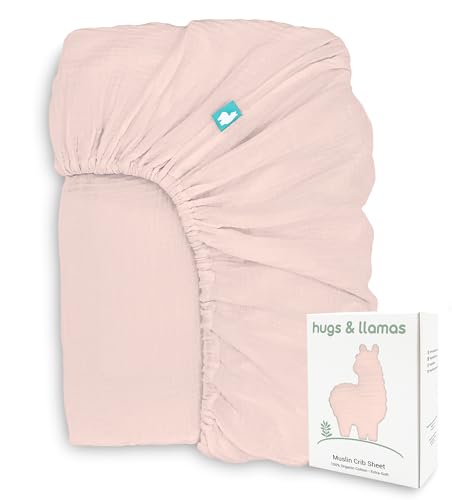 Hugs & Llamas | 100% Organic Cotton Muslin Fitted Crib Sheet - Baby Crib Sheets for Boys & Girls - Neutral (Cotton Candy)