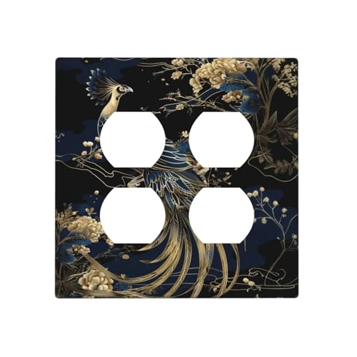 Thsanju Gold Peacock Golden Peony Flowers Plants Outlet Covers 2-Gang Duplex Light Switch Covers Decorative Gfci Wall Plate Covers Electrical Receptacle Switchplate Plug Faceplate for Bathroom Decor