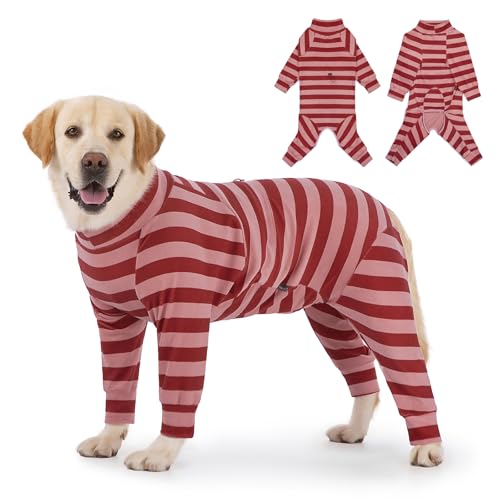 Dog Coats Autumn Winter Jumpsuit for Large Medium Dogs, Warmer Recovery Suit Polar Fleece Dog Bodysuit Lightweight Pajamas Pullover Stretchy Onesie Four-Legged Cold Weather Clothes (5XL, Xmas)