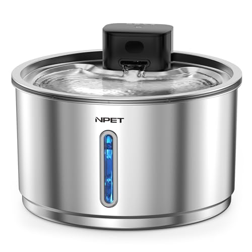 NPET Wireless Cat Water Fountain Stainless Steel, 1Gallon/135oz Battery Operated Automatic Pet Drinking Fountain - Cordless Dog Water Dispenser with Water Level Window for Cats Indoor