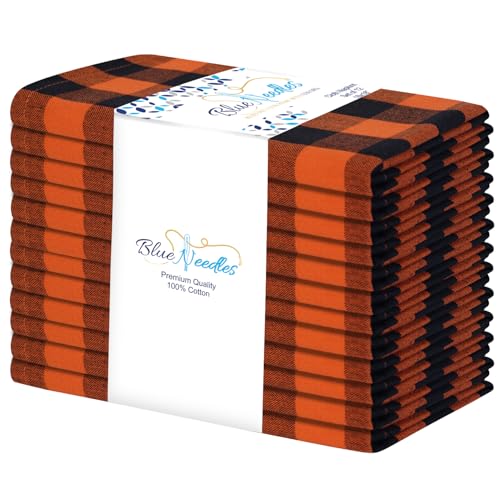 Blue Needles Gingham Buffalo Plaid Cloth Napkins 100% Cotton Set of 12 Dinner Table Napkins 18x18 inch Soft, Reusable, Washable Perfect for Wedding Parties & Everyday Use - Orange and Black