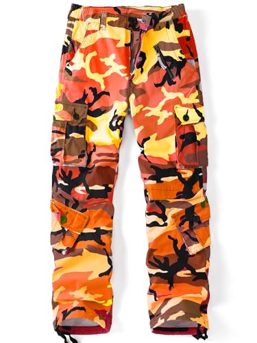 AKARMY Womens Cargo Pants with Pockets Outdoor Casual Ripstop Camo Military Combat Construction Work Pants Orange 6