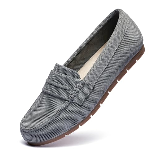 Cvistpieo Loafers for Women Comfortable Dressy Casual Work Flats Lightweight & Breathable Slip On Walking Shoes Knit Grayish Green Size 7.5 Wide Width