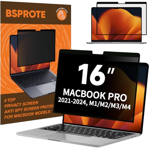 BSPROTE Privacy Screen for MacBook Pro 16 Inch (2021-2024, M1, M2, M3, M4), Removable Anti-Spy Filter for Mac Pro 16.2", Eye Protection HD Anti-Scratch