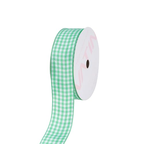 VATIN Emerlad and White Gingham Ribbon, Each Roll Measuring 1 Inch Wide by 10 Yards Long, Featuring Polyester Woven Edges, Perfect for Gift Wrapping and Festive Party Decorations