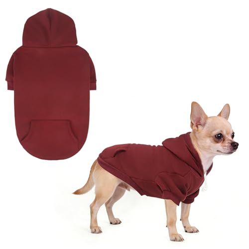 KOOLTAIL Dog Hoodie for Large Medium Small Dogs,Soft&Warm Pet Sweater with Leash Hole and Pocket Boy Girl,Puppy Fall Winter Jacket Clothes,French Pitbull Cold Weather Coat Sweatshirt,Deep Red S