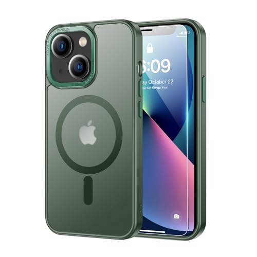 SEXYMOM Magnetic for iPhone 14 Case with Screen Protector - Wireless Charging Compatible,21ft Military-Grade Drop Tested, Shockproof Slim Fit Translucent Matte Cover - Pine Green