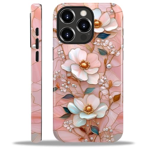 SKAMIX Case for iPhone 15 Pro,Shockproof TPU Bumper Drop Protection Hybrid 2-Layer Hard Cover for iPhone 15 Pro-Pearl Pink Lotus