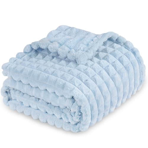 Yameishy 3D Grid Square Baby Blanket, Ultra Soft Flannel Fleece Plush Blanket for Newborns & Toddlers, 30 x 40 Inch Receiving Blankets (Blue)