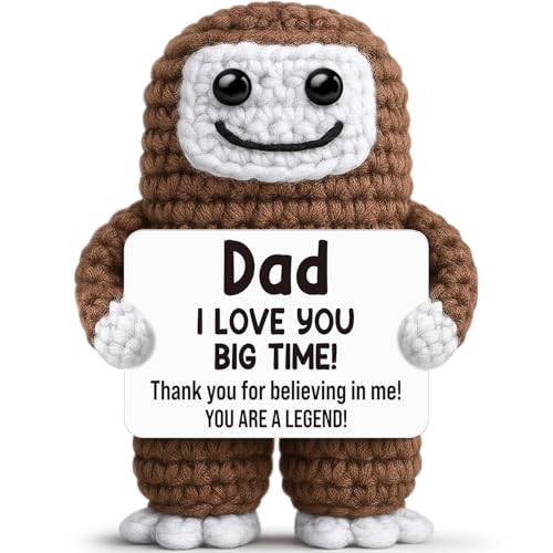 Dad Gifts from Daughter Son Wife,Valentines Day Fathers Day Birthday Gift for Dad,Funny Handmade Crochet Bigfoot Emotional Support Office Desk Decor for Men Step Bonus New Father Papa,Cute Small Gifts