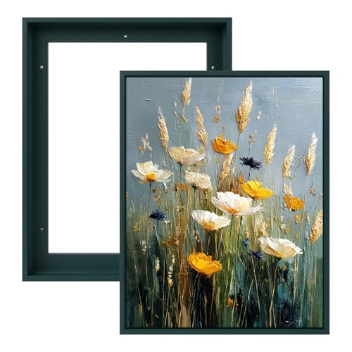 FOLKOR Canvas Floater Frame for 11x14 Art Prints Oil Paintings, 2 Pack 0.9" Deep Complete Floating Frames for Landscape Portrait Bedroom Apartment Decor, Horizontal or Vertical Display (Dark Green)