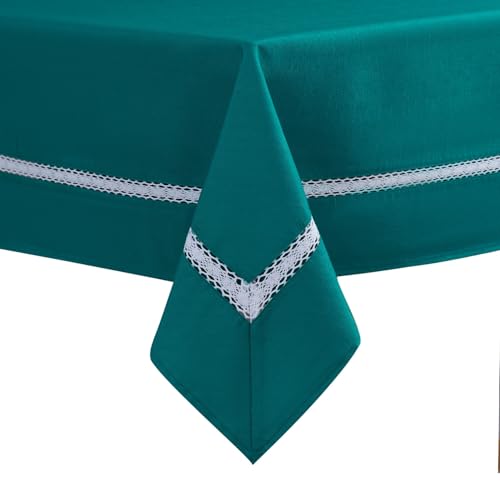 EHouseHome Heavy Duty Fabric Tablecloth with White Lace-Waterproof/Wrinkle Free/Stain Resistant/Oil Proof-for Dining,Indoor&Outdoor,Wedding,Holiday,Teal,Rectangle 60x84Inch