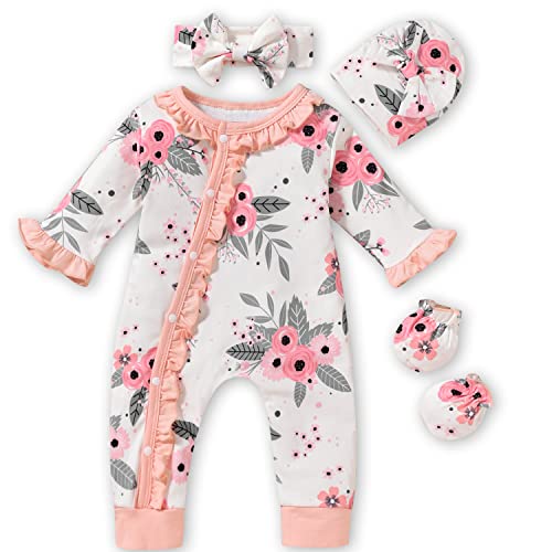 Aalizzwell 0-3 Months Newborn Baby Girls Floral Romper Infant Fall Winter Clothes Coming Home Outfit Pink Clothing