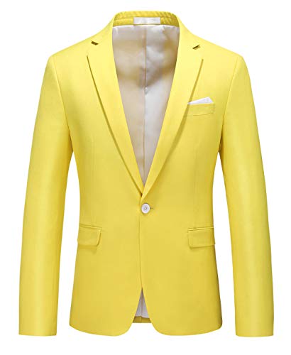 MOGU Blazer for Men, Casual Fit Jacket with One Button, US Size 30 (30, Lemon)
