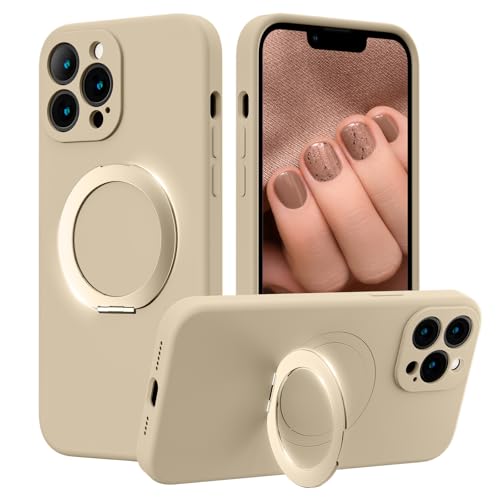 MCFANCE Magnetic Silicone Case with Stand for iPhone 13 Pro Max (6.7 inch) | Compatible with MagSafe, Shockproof Protection, Anti-Scratch Microfiber Lining | Mustard Green