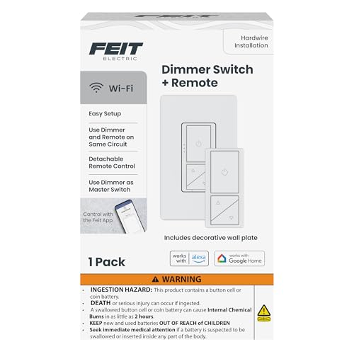 Feit Electric Smart WiFi Dimmer Switch with Remote, Single-Pole/3-Way/4-Way, Voice Control with Alexa & Google Asst, Wireless Wall-Mount Remote, App Control, Neutral Wire Required, DIM/Button/WiFi