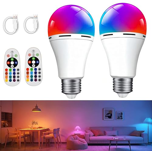 HOMOSUM Rechargeable Battery Operated Light Bulb,E26 Dimmable Color Light Bulb with Remote Control,40W Equivalent,2500mAh,LED Puck Emergency Lamp,for Non-Hardwired(2-Pack)