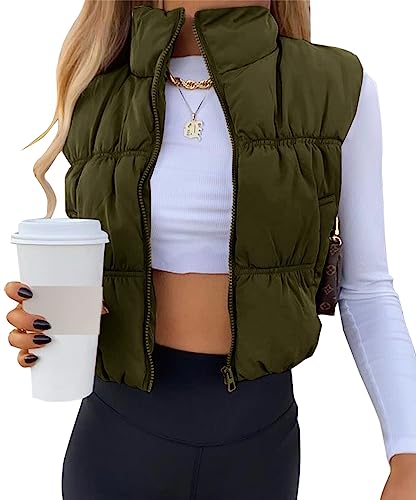 SySea Women's Crop Puffer Vest Winter Zip Up Lightweight Sleeveless Warm Outerwear Padded Coat