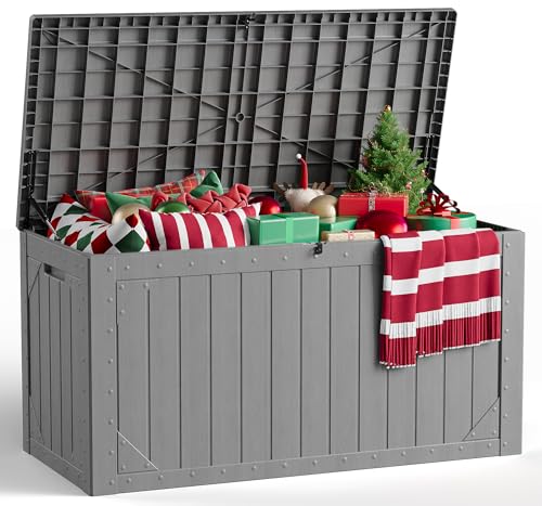 MAKE CHANGES Outdoor Storage Box, 100 Gallon Deck Box Outdoor Storage Bench Outside Waterproof Resin Storage Bench, Lockable Patio Cushions, Garden Tools Storage For Furniture, UV Resistant(Gray)
