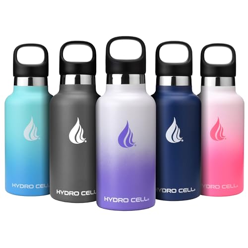 HYDRO CELL Stainless Steel Water Bottle with Straw & 2 Standard Mouth Lids (32oz 24oz 20oz 16oz) Keeps Liquids Hot or Cold w/Double Wall Vacuum Insulated Leak Proof Sport Design (Lavender/White 16oz)